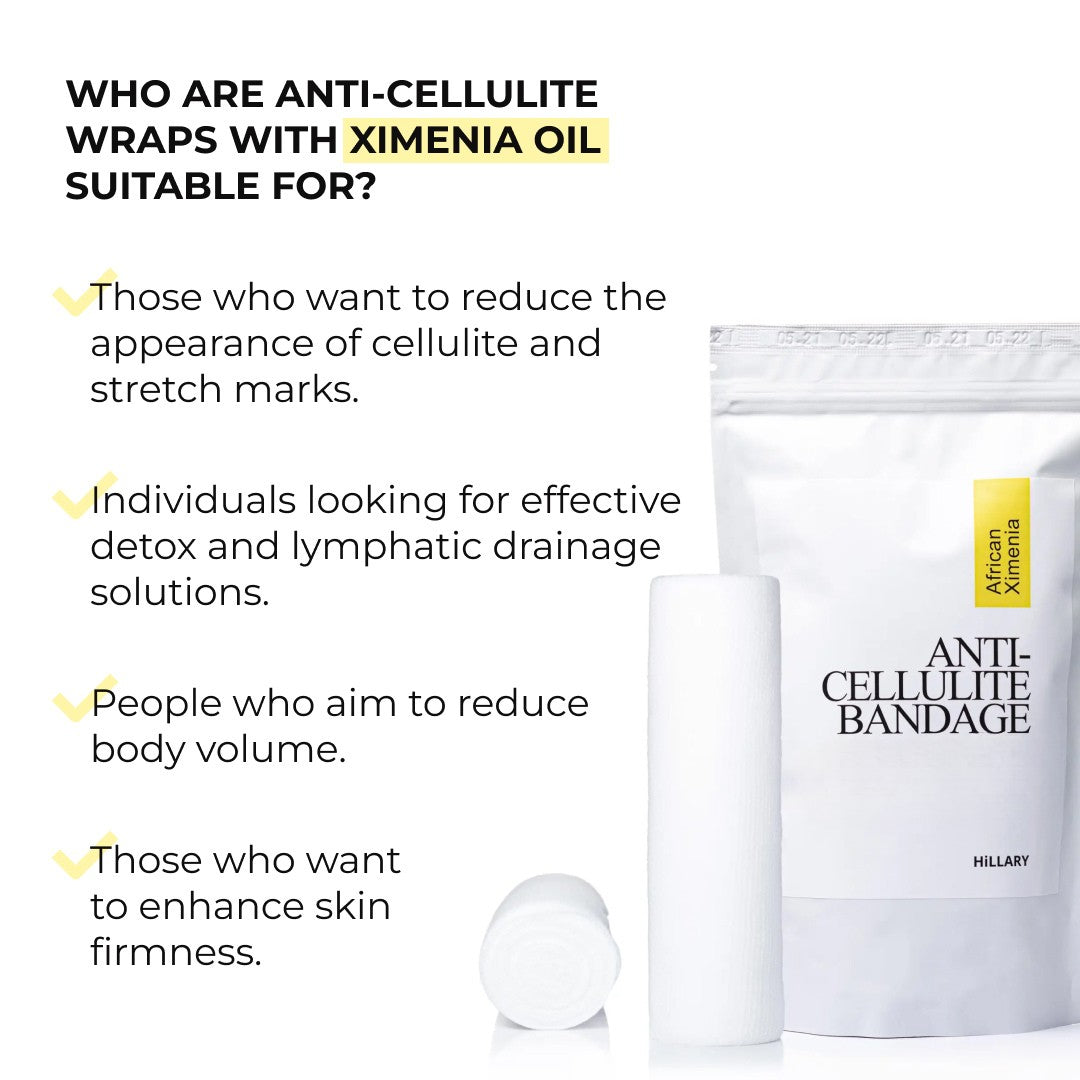 Complex de bandaje anticelulitice cu efect de încălzire și ulei de ximenia Hillary Bandage Anti-cellulite African Ximenia (10 bucăți)