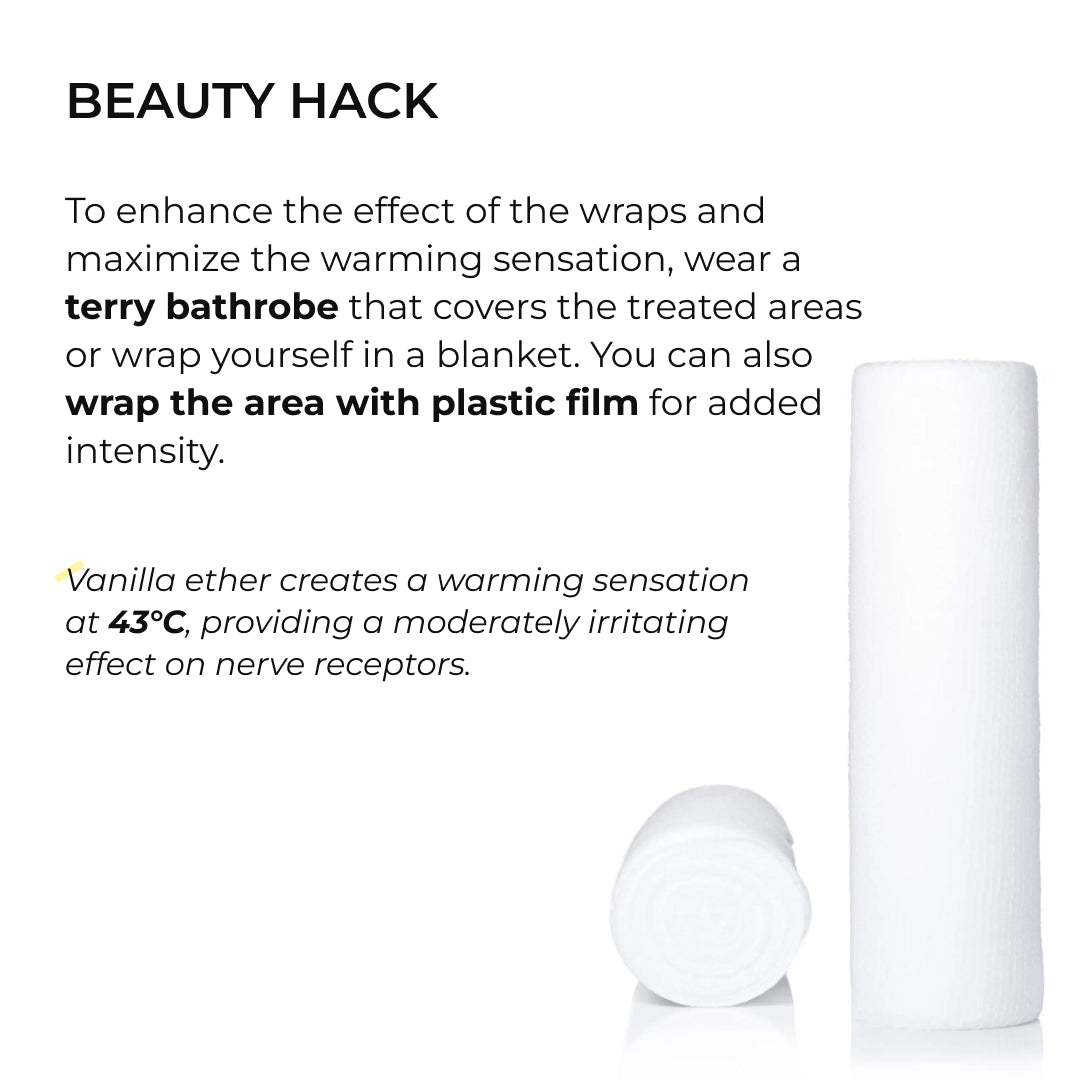 Bandaże dobrze nasączone, nie zsuwają się. Ciepło umiarkowane. Efekt wizualny widoczny po 3–4 aplikacjach. Idealny rytuał przed latem.