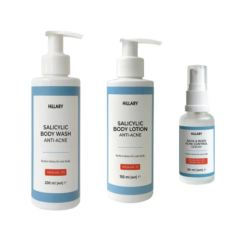 Complexul pentru îngrijirea pielii problematice a corpului cu acid salicilic include 3 produse eficiente care combat eficient erupțiile cutanate. Utilizarea regulată a acestui set permite îmbunătățirea semnificativă a aspectului pielii, reducerea erupțiilor cutanate, uniformizarea reliefului și asigurarea unei hidratări de lungă durată.