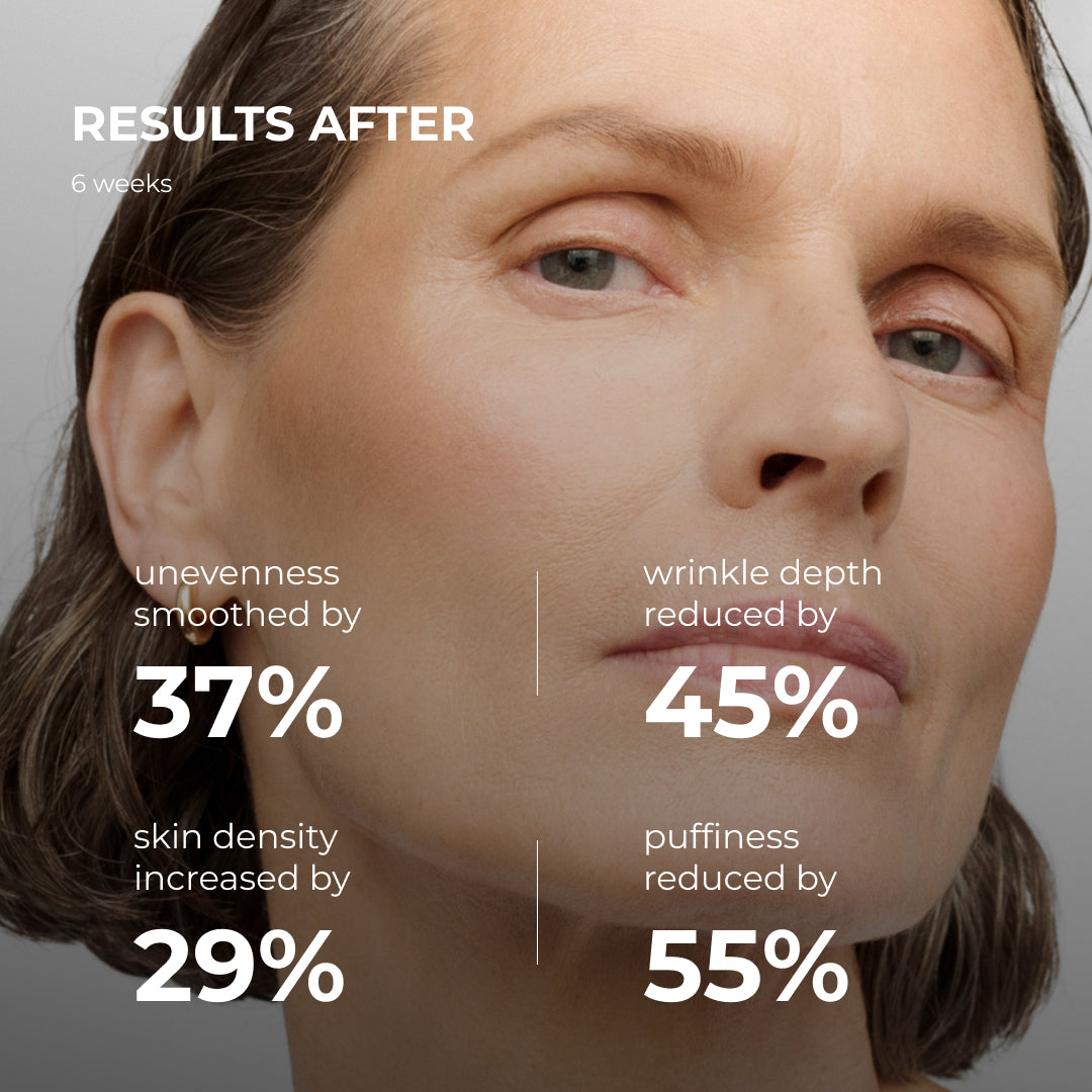 După 6 săptămâni de utilizare, s-au înregistrat îmbunătățiri semnificative ale stării pielii, confirmate de dermatologi și de echipamente speciale pentru analiza texturii, hidratării și elasticității pielii.