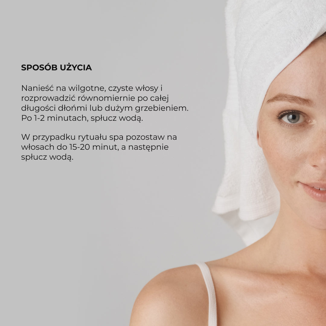 - Pentru un tratament intensiv, lasă balsamul să acționeze 15-20 de minute, apoi clătește cu apă.