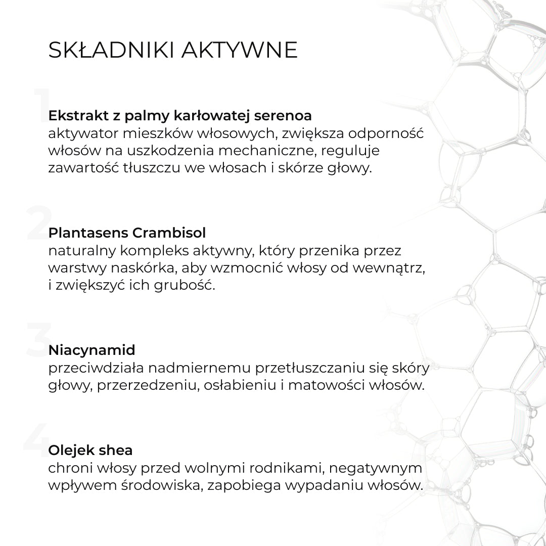 Zestaw świetnie sprawdza się przy cienkich włosach, które wypadały garściami. Teraz są mocniejsze i bardziej elastyczne.