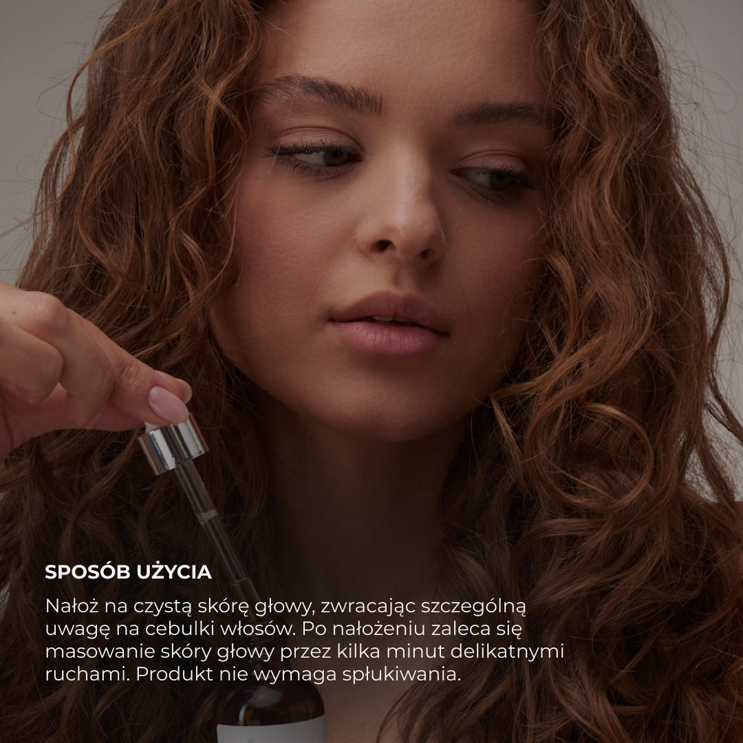 Aplică serul pe scalpul curat, concentrându-te pe rădăcinile părului. Produsul nu necesită clătire. După aplicare, masează ușor scalpul timp de câteva minute. Se recomandă utilizarea după fiecare spălare a părului.