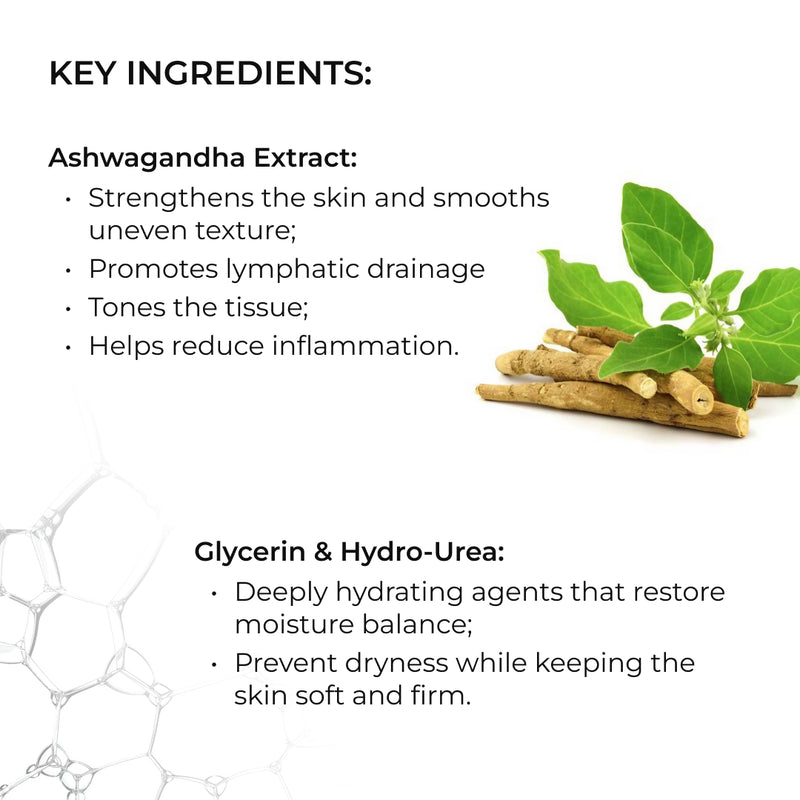 Descoperă un set eficient de îngrijire corporală cu extract de ashwagandha, care combină trei produse puternice pentru combaterea celulitei, îmbunătățirea tonusului pielii și refacerea elasticității acesteia. Această abordare complexă îți oferă nu doar rezultate vizibile, ci și o experiență plăcută la fiecare etapă a ritualului de îngrijire.