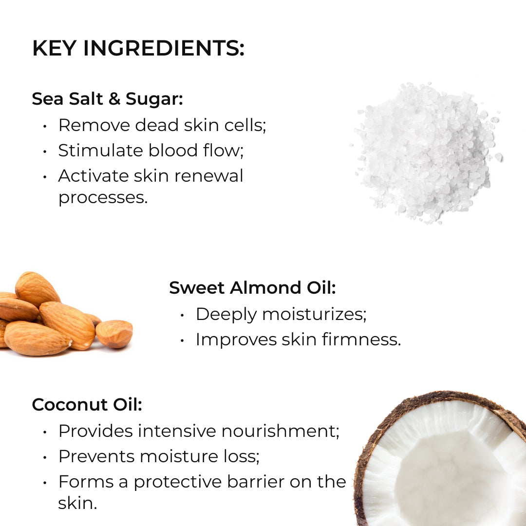 Cele trei produse acționează în sinergie, oferind o îngrijire completă: exfoliantul curăță și îndepărtează celulele moarte, împachetările stimulează microcirculația și reduc vizibil aspectul celulitei, iar gelul-cremă menține hidratarea optimă și tonusul pielii.