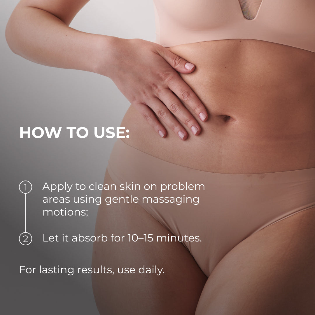 Mod de utilizare: aplicați pe pielea curată din zonele cu probleme, prin mișcări ușoare de masaj. Lăsați să acționeze 10–15 minute până la absorbția completă.
