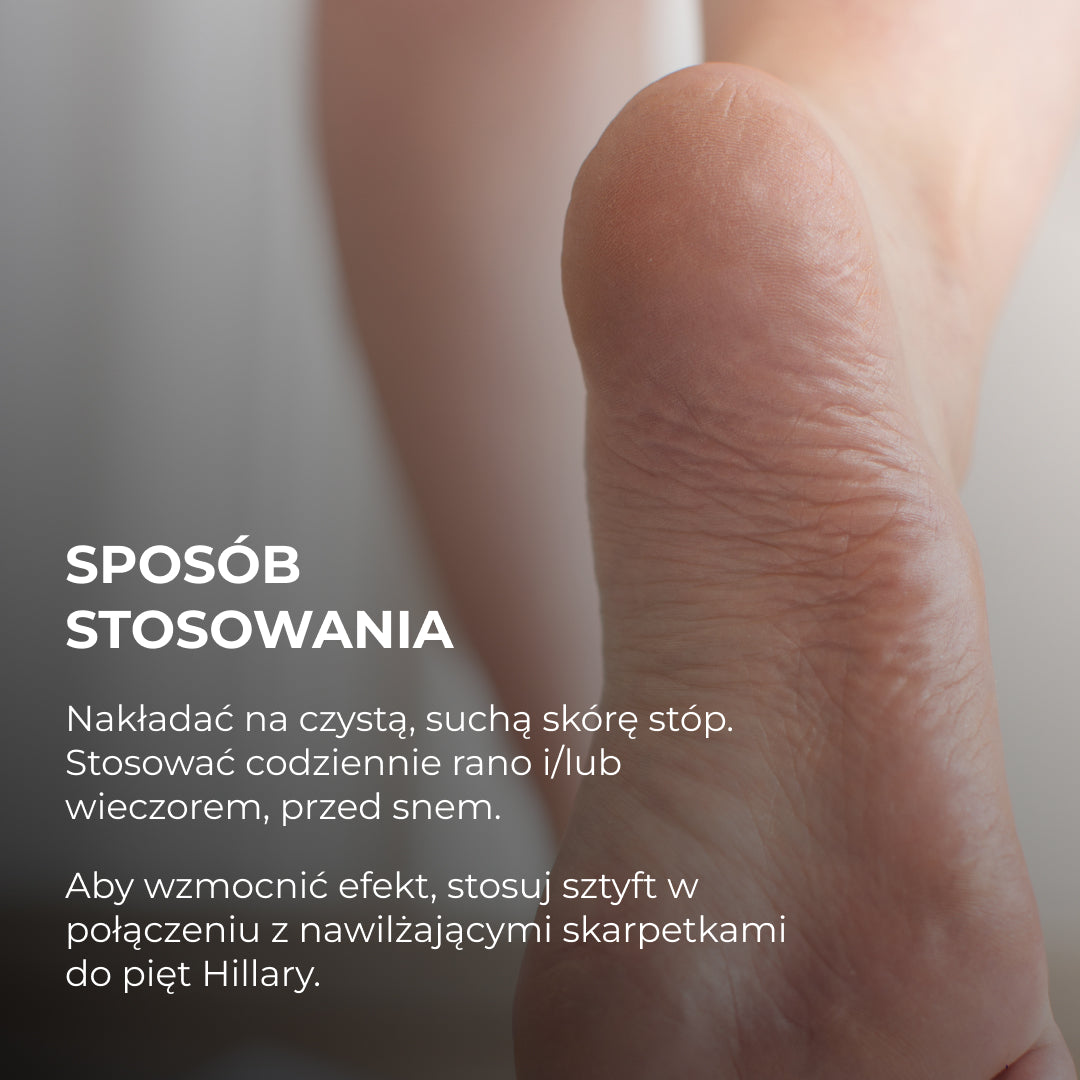 Pentru intensificarea efectului și o îngrijire la nivel de salon, folosiți stick-ul împreună cu Șosetele hidratante pentru călcâie Hillary HydraHeel Soft Socks.