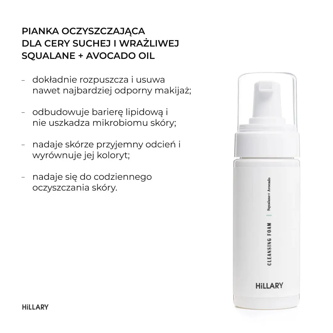 Hillary Cleansing Foam + 5 Oils – o spumă care curăță pielea în profunzime, îndepărtează eficient machiajul, impuritățile și excesul de sebum. Conține 5 uleiuri care ajută la menținerea echilibrului natural al pH-ului și întăresc bariera lipidică a pielii.