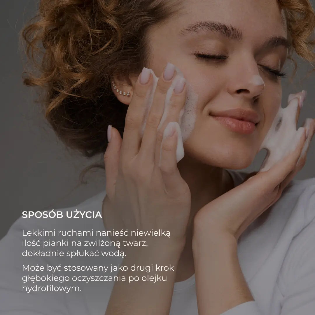 Utilizați o cantitate mică de spumă pentru a curăța fața. Aplicați-o pe pielea umedă și masați ușor, pentru a îndepărta complet machiajul și impuritățile. Clătiți fața cu apă călduță.