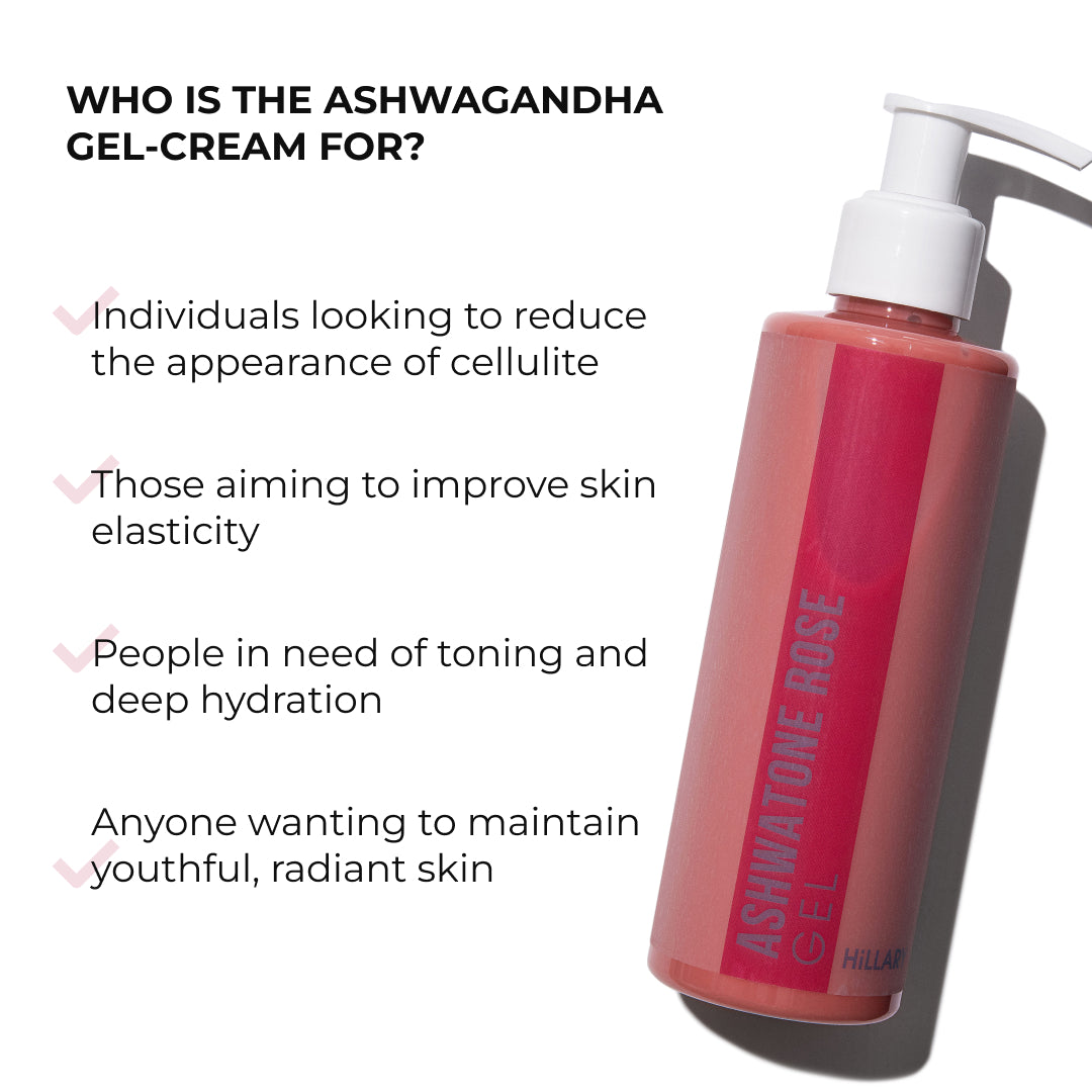 Gel-cremă pentru tonus și elasticitate a pielii cu extract de Ashwagandha Hillary AshwaTone Rose Gel, 200 ml