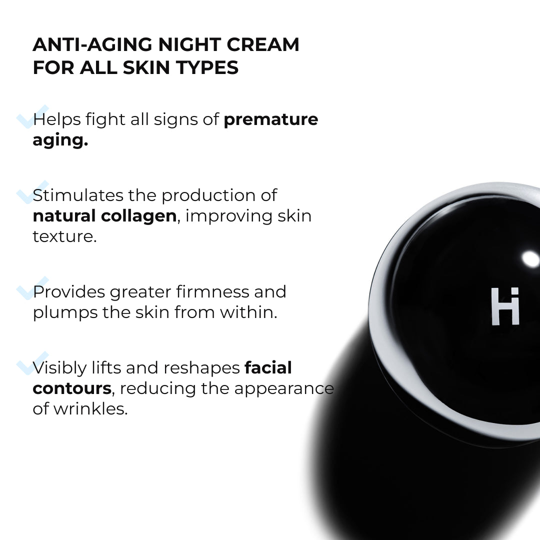 Cremă de noapte cu un complex de ingrediente eficiente, care ajută la combaterea tuturor semnelor de îmbătrânire prematură. Acțiunea ingredientelor este potențată de extractul de bulgăre de crocus, care crește semnificativ viteza de formare a colagenului pe timpul nopții, pentru ca dimineața pielea să arate mai proaspătă.
